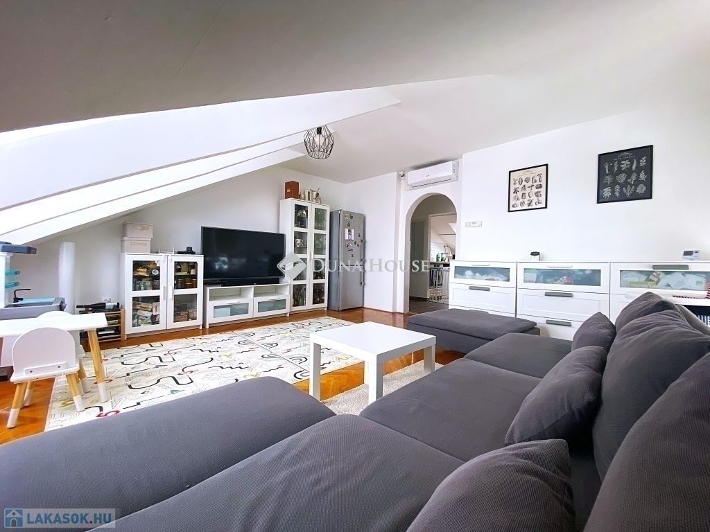 Pécsen, a közkedvelt Bánki Donát utcában eladó egy kiváló adottságokkal rendelkező tetőtéri téglalakás!A lakás bruttó 80 m²-es, nettó 50 m², míg a hasznos alapterülete 65 m², elosztása pedig rendkívül praktikus és élhető. A jól átgondolt alaprajznak köszönhetően 2 külön nyíló szoba és tágas nappali biztosítja a kényelmes életteret.A folyosóról nyílik egy kis háztartási helyiség, ahol a mosógép és szárítógép kényelmesen (hangszigetelten) elfér.Az ingatlan jó lokációban, gyerekbarát környezetben helyezkedik el, csendes, mégis jól megközelíthető környéken.Műszaki felszereltsége és állapota kiváló:- minőségi bejárati és beltéri ajtók- gáz-cirkó fűtés- a fürdőszobában padlófűtés- klimatizált, így nyáron is komfortosIdeális választás családoknak vagy befektetőknek egyaránt, akik egy jó elrendezésű, igényes otthont keresnek Pécs egyik kedvelt részén.