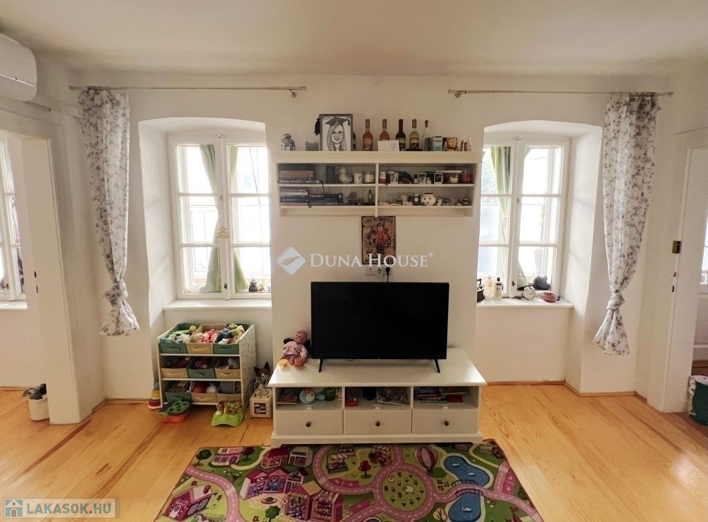 Pécs történelmi Belvárosában eladó egy 59 nm lakótérrel rendelkező, nappali+ 2 szoba elosztású, felújított állapotú, klímás, gáz kondenzációs kazánnal fűtött, polgári hangulatú lakás, ÜVEGEZETT VERANDÁVAL, SAJÁT 50 NM-es KERTKAPCSOLATTAL, fedett terasszal, fűszerkerttel. Az ingatlan udvari elhelyezkedéséből adódóan inkább kis ház jellegű, mint társasházi lakás, így közvetlen szomszédoktól is mentes! A lakás felújítása során igyekeztek megőrízni eredeti polgári jellegét ( eredeti fa külső-belső nyílászárók megtartásával és hajópadló helyreállításával). Keressen bizalommal, amennyiben kérdése lenne vagy megtekintené az ingatlant!