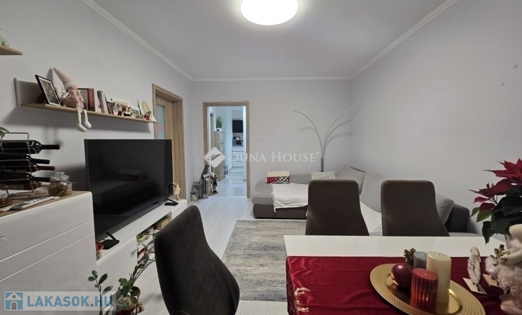 Világos, jó elosztású , teljesen felújított 3 szobás lakás!Pécs Kertváros központi részén, a Nagy Imre úton kínálok megvételre egy 63m²-es, háromszobás, kelet-nyugati tájolású, rendkívül világos és kényelmes elrendezésű lakást, panelprogramban felújított társasház 2. emeletén.A környezet nyugodt és barátságos, kiváló infrastruktúrával rendelkezik: a közelben található több bolt, gyógyszertár, orvosi rendelő, iskola, óvoda, valamint buszmegálló is minden fontos intézmény néhány perc sétával elérhető.A lakás főbb jellemzői:-63 m² alapterület-3 szoba-tágas erkély-K-Ny-i tájolás, napfényes helyiségek-Műanyag nyílászárók redőnnyel-Új bejárati és beltéri ajtók-Új konyhabútor, előszobabútor-felújított villany és vízvezeték-Klímával felszereltRendkívül kedvező rezsi:Téli fűtés + meleg víz: kb. 25.000 Ft/hóNyári rezsi (meleg vízzel együtt): kb. 9.000 Ft/hóPanelprogram elvégezve: a társasház szigetelt, a homlokzati nyílászárócsere megtörténtRendezett tulajdoni viszony, tehermentes, lakóközösség kiválóIdeális választás kis családoknak, akik fontosnak tartják a jó elosztást és a világos teret illetve fiatal párok számára, befektetőknek, akik jól kiadható lakást keresnek.Személyes megtekintésért várom hívását!