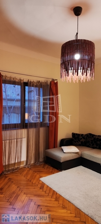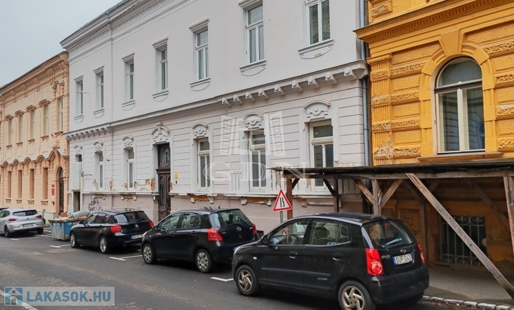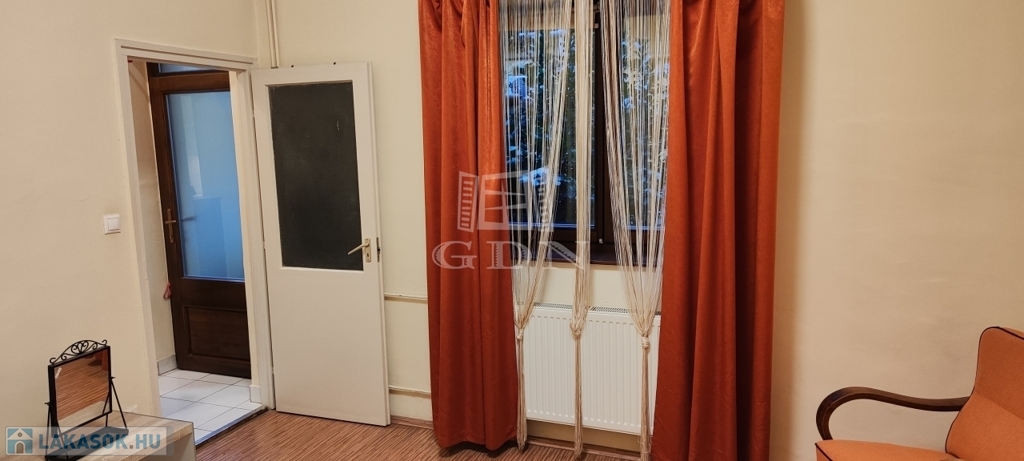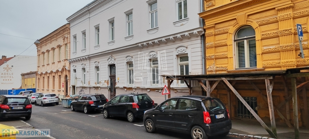 Pécs belvárosában a Mária utcában eladó egy földszinti, 59 m2-es, kertkapcsolatos téglalakás.