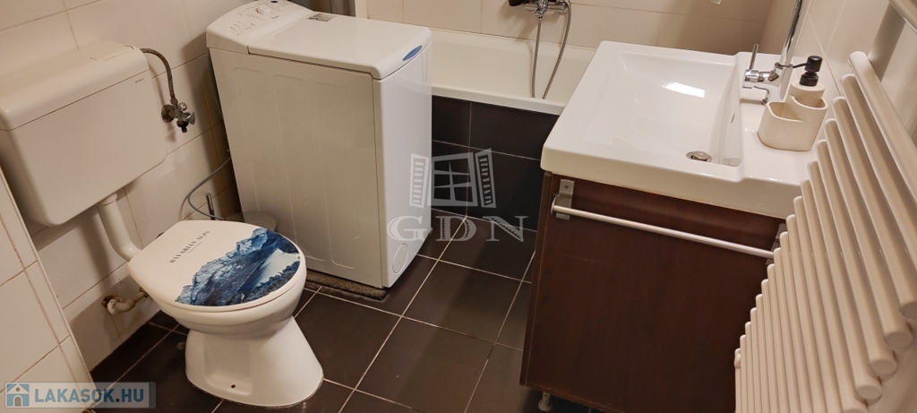 A fürdőben kád és zuhany is kiépítésre került.Az egyik szoba csaphornyos, a másik laminált parkettás, a többi helyiség kerámia burkolatú.