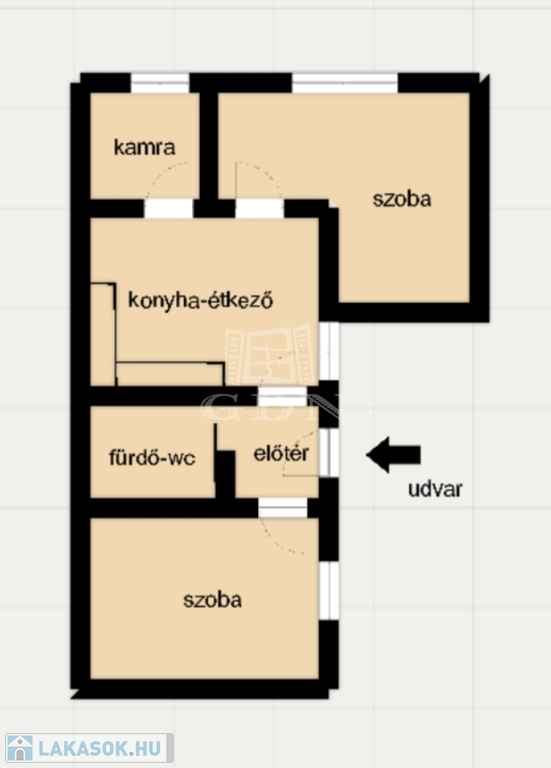 előtér - szoba - fürdő-wc - konyha-étkező - szoba - kamra,padlásfeljáró
