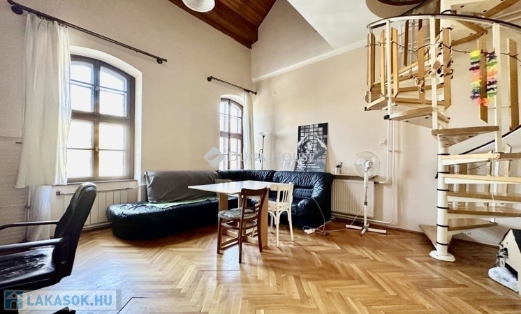 Eladó Pécs történelmi belvárosában, Nagy Flórián utcában két hálós galériás lakás kertkapcsolattal. Az ingatlan négy lakásos társasházban a belső és szélső oldalon helyezkedik el. A lakáshoz az utcafronti közös bejáraton és zárt folyosón keresztül, a zárt zöld füves és virágos mediterrán udvaron át jutunk be.61 m²-es, galériás és kertkapcsolaton kívül még tárolóval rendelkezik.A földszinten előszoba, fürdőszoba, konyha és tágas nappali, melyben a stabil tölgyfa csigalépcsőn keresztül az emeletre érve két szoba, a galérián beépített tároló szekrény található. A helyiségek közül a nappaliban és a szobákban meleg burkolat, a többiben pedig hideg burkolat van. A lakás gázfűtéses.A társasházban élő lakástulajdonosok mind régóta élnek itt, nem cserélődtek, szeretnek itt lakni. Az ingatlan igazi értékét a műemlék épület, a mediterrán kert kapcsolat és a galériás kialakítás adja.A ház előtt közvetlenül lehet parkolni engedéllyel, vagy bérlettel.A lakás alacsony rezsi költségű melyet közös költség nem terhel.Fiatalok vagy fiatal családok számára ideális lakhatást tud biztosítani az egyedi igények szerint elvégzendő felújításokkal.