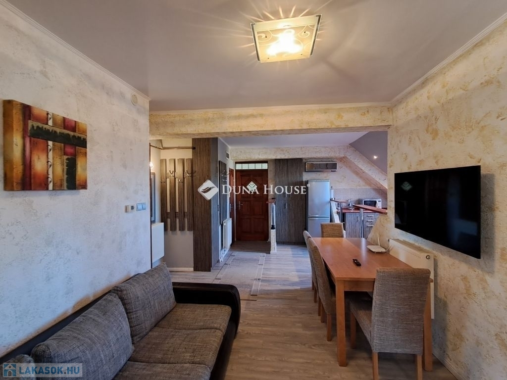 Eladó Pécs-Rózsadombon a Fáy András utcában 3 emeletes tégla építésű társasház legfelső szintjén egy átalakított, bruttó 70 m2-es (nettó 62 m2) erkélyes lakás, szigetelt épületben.Főbb jellemzők:-Kiválló állapotú műanyag nyílászárók-2+1 félszobás, nappali/amerikai konyhás, fürdő, wc elrendezés-Korszerű gázcirkó fűtésű, hűtő-fűtő klímával-Szúnyogháló/Redőnyökkel-Napellenző, áramkiállás az erkéllyen-Saját tároló-Gyönyörű Mecsekre néző panorámaAz ingatlan 1994-ben épült, karbantartott állapotú, a társasház rendezett, csendes lakóközösséggel rendelkezik, a parkolás az utcán díjmentesen megoldott. Az ingatlan infrastruktúrája kiváló: közelben található iskola, óvoda, üzletek, étterem, patika, buszmegálló, a belváros tömegközlekedéssel is gyorsan elérhető.Ideális választás fiatal pároknak, családoknak, vagy akár befektetésnek egyaránt.További információért, megtekintésért várom hívását!
