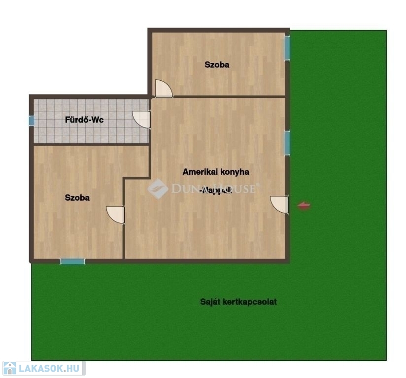 - amerikai konyha-nappali+ 2 szoba elosztású