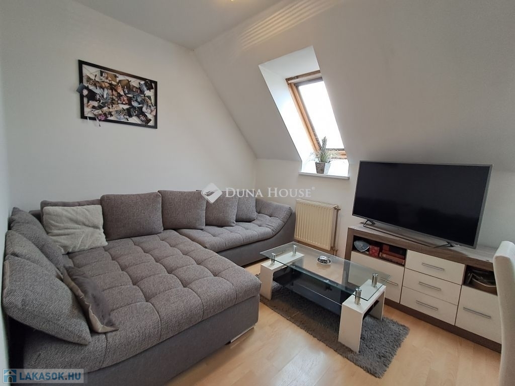 Eladó Pécs belvárosában a Móricz Zsigmond téren egy jó állapotú, 65 m2-es, belső kétszintes, gázcirkó fűtésű, két hálós tetőtéri téglalakás.