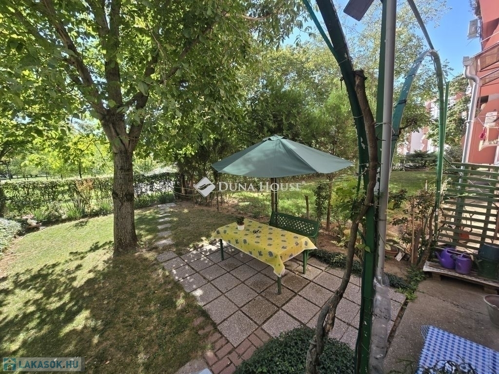 Eladó 74 m2-es, földszinti, kertkapcsolatos lakás kertvárosi környezetben!Eladásra kínálunk a Nagy Imre úton egy 74 m²-es, jó állapotú, földszinti lakást egy négyemeletes, szigetelt panelépületben. Az eredetileg 3,5 szobás elrendezés modern igényekre lett átalakítva: tágas konyha-étkező és három külön nyíló hálószoba várja új tulajdonosát.A lakáshoz tartozik egy különleges adottság: az önkormányzattal kötött használati megállapodás alapján egy kerítéssel körbevett zöld terület, virágos kert is a tulajdonos kényelmét szolgálja. A gondozott kertben hintaszék, kerti asztal és székek is helyet kaptak így a lakás valódi kertkapcsolatos otthon érzetét nyújtja.Főbb jellemzők:-műanyag nyílászárók (redőnnyel, szúnyoghálóval),-klímaberendezés,-részben cserélt beltéri ajtók,-rendezett, csendes lakóközösség,-nagy tároló ketten osztozva-kertkapcsolat-jó közlekedés, kertvárosi, nyugodt környezet.Az ingatlan tehermentes a kiköltözés picit hosszabb időt igényel. A lépcsőház tiszta ,rendezett a lakóközösség kiváló!Ez az ingatlan ideális választás családoknak vagy bárkinek, aki a kényelmes lakás előnyeit szeretné ötvözni a saját kert nyugalmával.További kérdéseivel és személyes megtekintésért várom hívását!