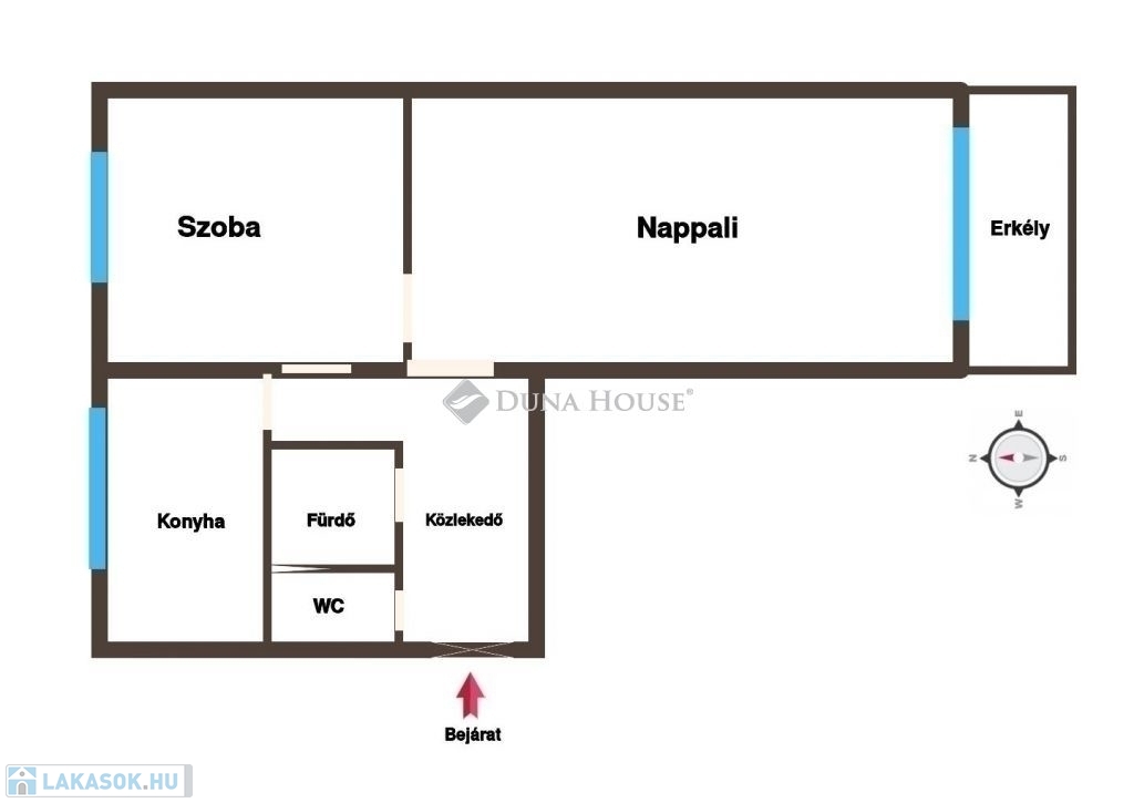 A lakás alapterülete 54m2: hálószoba, külön nappali, konyha, wc, fürdőszoba, terasz.
