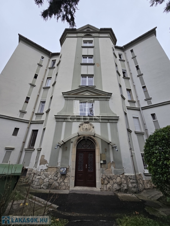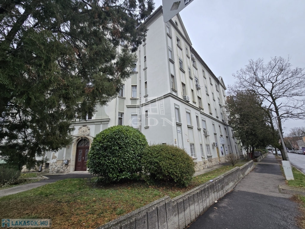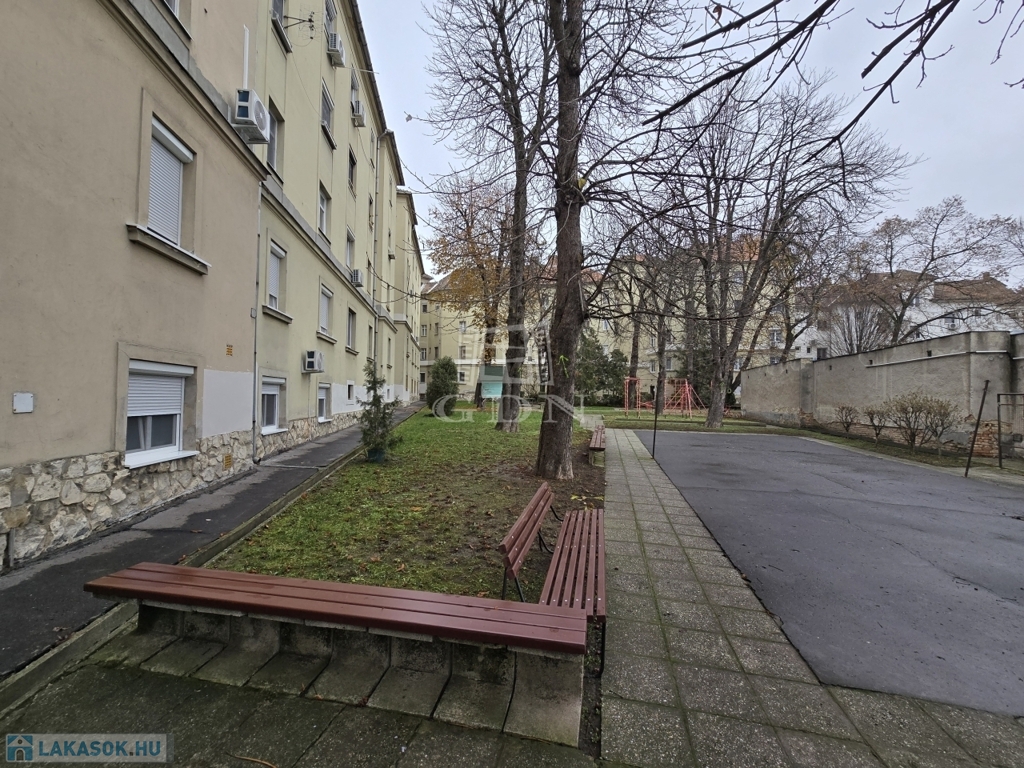 A lakás egy az 1950-es évek elején épült, rendezett, 12 lakásos társasházban található, csendes lakóközösséggel és tiszta, karbantartott lépcsőházzal. A társasház külön előnye, hogy két bejárattal rendelkezik: az egyik utcai, míg a másik egy parkosított belső udvarra nyílik, ahonnan közvetlenül elérhetők a garázsok is.