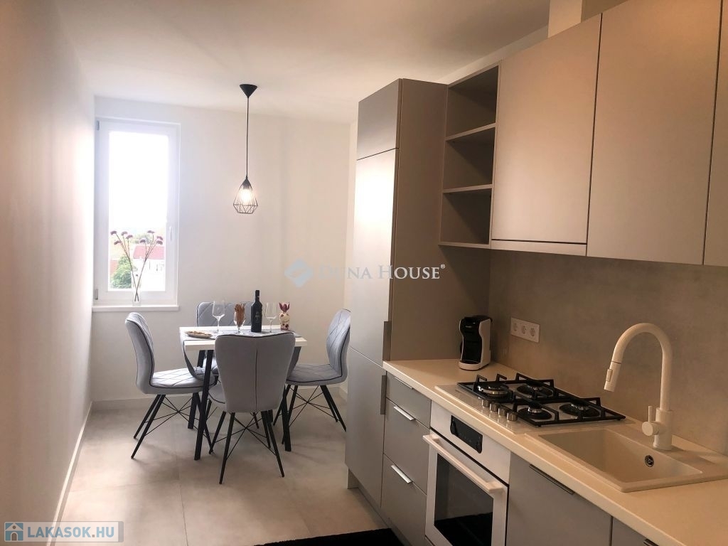 Eladó Pécs belvárosában, a PTE mellett egy teljes körűen felújított 2 szobás lakás!Az ingatlan belső elrendezése:2 külön bejáratú szoba, tágas konyha-étkező, fürdőszoba wc-vel, közlekedő és háztartási helység.A lakás az idei évben került felújításra, kizárólag minőségi anyagokkal, igényes kivitelezéssel.A felújítás során cserélve lett a teljes villamos és vízvezeték hálózat, fűtését és melegvíz ellátását nagy teljesítményű, wifi-s kombi gázkazán biztosítja. Ablakok, bejárati ajtó és belső ajtók szintén cserélve, egyedileg gyártott konyhabútor került beépítésre. Új fürdőszoba zuhanykabinnal, új padló és falburkolatok, fényzáró függönyök.A lakáshoz tartozik egy udvari tároló is.Buszvégállomás és az Árkád bevásárló központ 3 perces sétára, történelmi belváros szintén néhány perc alatt elérhető.Bővebb információkért hívjon.