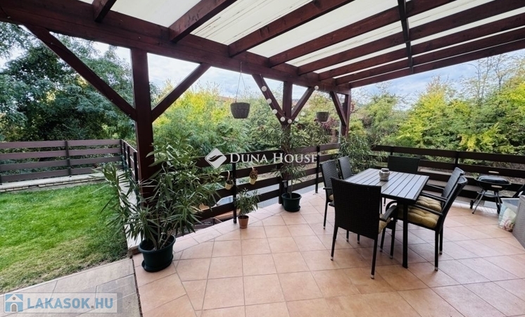 Eladó modern földszinti lakás nagy fedett terasszal és kertkapcsolattal Pécs, Rigóderi városrészPécs egyik kedvelt, csendes részén, a Rigóderi városrészben eladóvá vált egy 2008-ban épült, rendezett társasházföldszinti, fiatalosan berendezett, modern lakása.Az ingatlan amerikai konyhás nappaliból, két kényelmes hálószobából, külön fürdőből és WC-ből áll. A lakáshoz tartozik egy nagyméretű, fedett terasz, valamint egy kis, saját kertkapcsolat, ami tökéletes helyszín a pihenésre vagy baráti összejövetelekre.A lakás világos, jól szellőző, ízlésesen kialakított, azonnal költözhető állapotban van. A fűtés egyedi gázkazánnal történik, így a rezsi rendkívül kedvező. Emellett klíma is beszerelésre került, ami nyáron kényelmes hőmérsékletet biztosít. A lakóközösség barátságos és összetartó, a ház pedig csendes, rendezett környezetben található.A vételár tartalmaz egy saját udvari gépkocsibeállót, valamint a ház előtt további parkolási lehetőség is biztosított.Főbb jellemzők:2008-as építés, modern társasházFöldszinti, fedett teraszos, kertkapcsolatos lakás2 hálószoba + amerikai konyhás nappaliKülön fürdő és WCEgyedi gázfűtés, kedvező rezsiKlímával felszereltSaját parkoló + utcai parkolási lehetőségCsendes környezet, jó lakóközösségIdeális választás fiatal pároknak, kisgyermekes családoknak, vagy akár befektetésre is kiváló lehetőség.