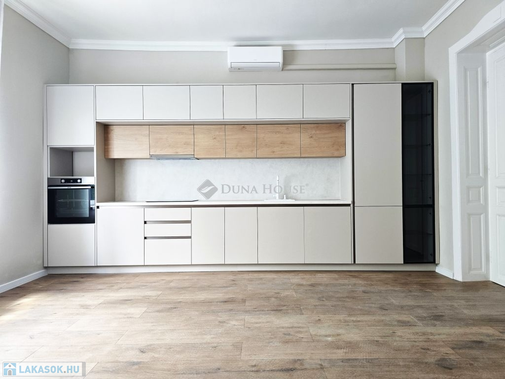 Az ingatlan elosztása: amerikai konyha-nappali+ 2 szoba, tágas előszoba, gardrób és fürdő-wc.Az ingatlan felújítása a következőket tartalmazta: lakrészenkénti külön mérőórák kialakítása, új víz-és villany vezetékhálózat, fűtésrendszer, burkolatok, szaniterek, műanyag nyílászárók-ELEKTROMOS ALU REDŐNYÖKKEL, felújított beltéri fa polgári ajtók, minőségi konyha bútor gépekkel, KLÍMA, friss festés.