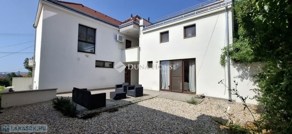 Pécsett, hangulatos Tettyei utcában eladó egy újszerű, 2018-ban épült 3 lakásos társasház földszinti lakása! A 64 m²-es ingatlan egy 100 m²-es terasszal és kis kerttel rendelkezik, ideális választás mind saját otthonnak, mind befektetésnek. Az amerikai konyhás nappali mellett az emeleten két kényelmes hálószoba található, mindegyik csodálatos panorámával a Tettyére, Havihegyre és a városra. A lakás modern, kondenzációs fűtéssel és modern burkolatokkal lett kialakítva. A földszinten kézmosós mosdóval, míg az emeleten zuhanyzós fürdőszobával. Saját, zárható tároló tartozik a lakáshoz. Lehetőség van teremgarázs hely vásárlására is, +8 M Ft értékben. Ne hagyja ki ezt az egyedülálló lehetőséget, ahol a tettyei hangulat és a modern életstílus találkozik! Ideális választás saját otthonnak vagy bérbeadásra is!