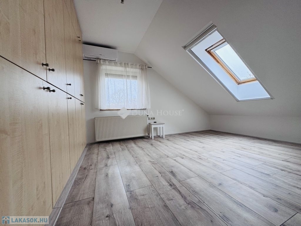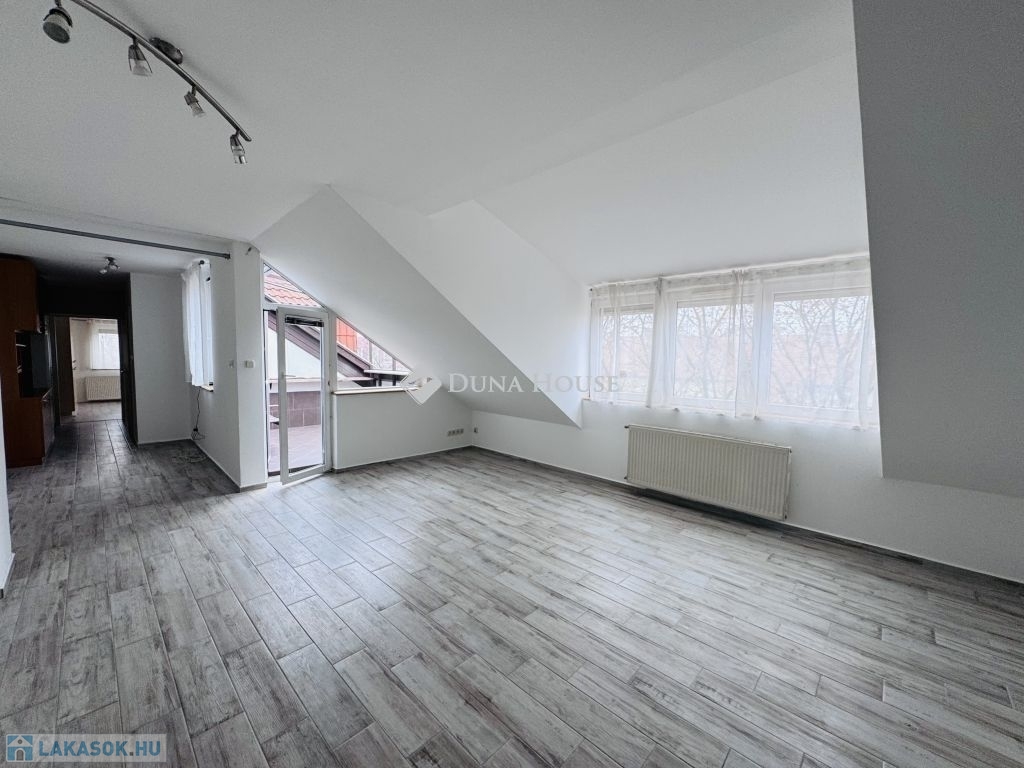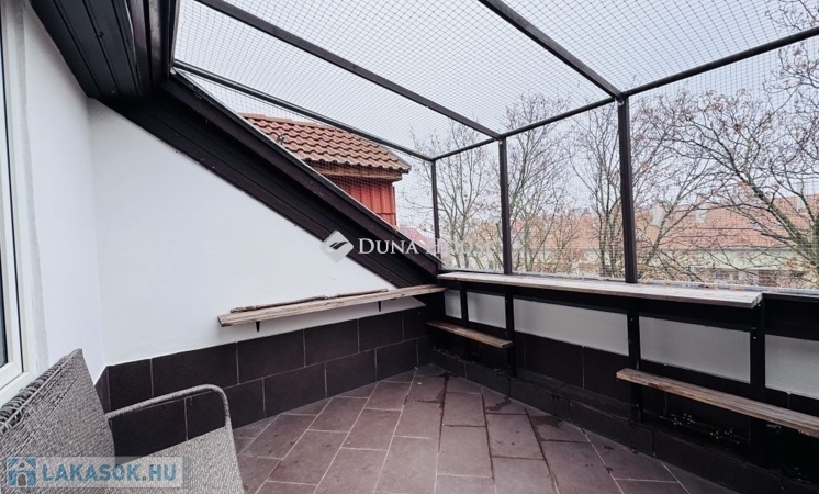 Eladó tetőtéri lakás Pécs közkedvelt Uránváros városrészében!Pécs egyik legkedveltebb, zöldövezeti részén, Uránvárosban eladóvá vált egy 1990-ben épült, kiváló állapotú, egyedi gázfűtéses tetőtéri lakás. Az ingatlan elrendezése és tágas tereinek köszönhetően ideális választás akár családok számára is.A lakás nettó alapterülete jól átgondolt elrendezésű:két különnyíló hálószoba,egy tágas, világos nappali,külön konyha és étkező,fürdőszoba és külön WC,kamra,dolgozósarok a gardrób részeként.A lakáshoz tartozik egy kb. 15 m²-es nagyméretű terasz, amely kiváló helyszínt biztosít pihenésre vagy baráti összejövetelekre.A lakás fenntartási költsége rendkívül kedvező, a fűtést és meleg vizet egyedi gázkazán biztosítja.A minőségi konyhabútor és beépített konyhai gépek a vételár részét képezik, ahogy a jelenlegi bútorzat is megegyezés tárgyát képezi.Az ingatlanhoz saját tároló is tartozik, a ház pedig rendezett, zöldövezeti környezetben található, jó szomszédsággal és kiváló infrastruktúrával: boltok, iskola, óvoda, buszmegálló néhány perces sétával elérhető.