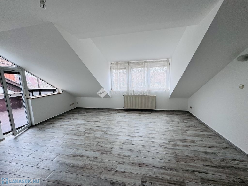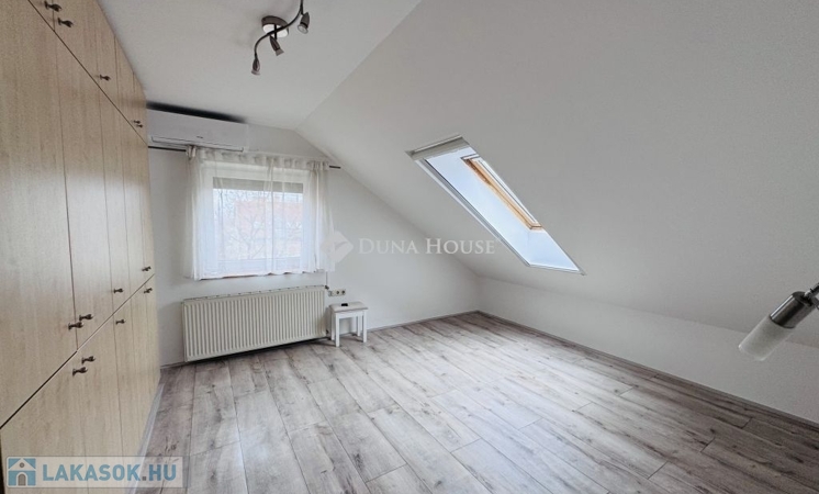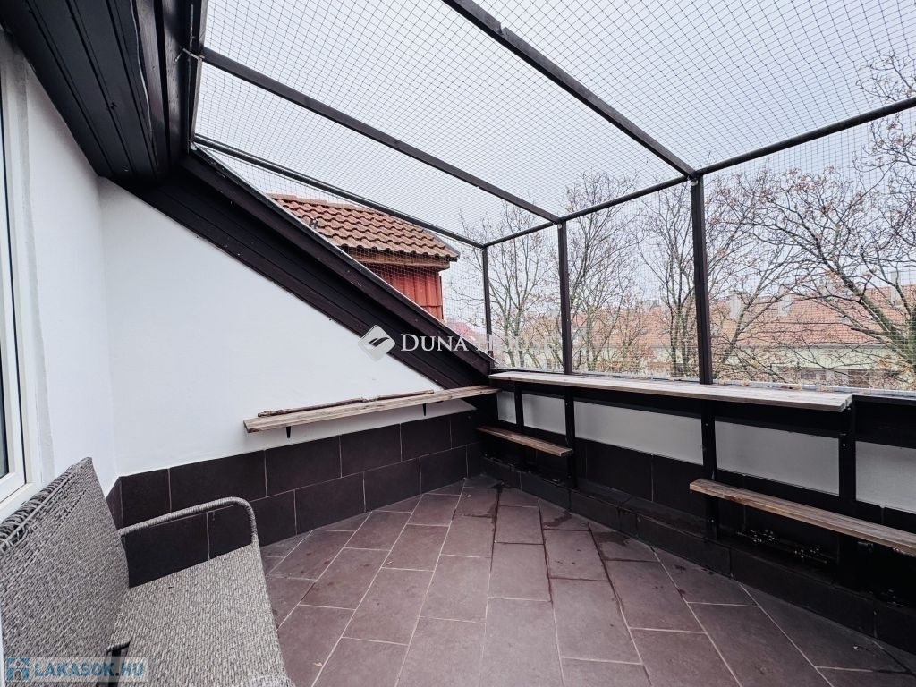 Eladó tetőtéri lakás Pécs közkedvelt Uránváros városrészében!Pécs egyik legkedveltebb, zöldövezeti részén, Uránvárosban eladóvá vált egy 1990-ben épült, kiváló állapotú, egyedi gázfűtéses tetőtéri lakás. Az ingatlan elrendezése és tágas tereinek köszönhetően ideális választás akár családok számára is.A lakás nettó alapterülete jól átgondolt elrendezésű:két különnyíló hálószoba,egy tágas, világos nappali,külön konyha és étkező,fürdőszoba és külön WC,kamra,dolgozósarok a gardrób részeként.A lakáshoz tartozik egy kb. 15 m²-es nagyméretű terasz, amely kiváló helyszínt biztosít pihenésre vagy baráti összejövetelekre.A lakás fenntartási költsége rendkívül kedvező, a fűtést és meleg vizet egyedi gázkazán biztosítja.A minőségi konyhabútor és beépített konyhai gépek a vételár részét képezik, ahogy a jelenlegi bútorzat is megegyezés tárgyát képezi.Az ingatlanhoz saját tároló is tartozik, a ház pedig rendezett, zöldövezeti környezetben található, jó szomszédsággal és kiváló infrastruktúrával: boltok, iskola, óvoda, buszmegálló néhány perces sétával elérhető.