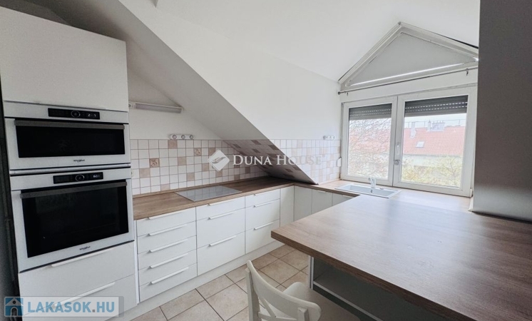 Eladó tetőtéri lakás Pécs közkedvelt Uránváros városrészében!Pécs egyik legkedveltebb, zöldövezeti részén, Uránvárosban eladóvá vált egy 1990-ben épült, kiváló állapotú, egyedi gázfűtéses tetőtéri lakás. Az ingatlan elrendezése és tágas tereinek köszönhetően ideális választás akár családok számára is.A lakás nettó alapterülete jól átgondolt elrendezésű:két különnyíló hálószoba,egy tágas, világos nappali,külön konyha és étkező,fürdőszoba és külön WC,kamra,dolgozósarok a gardrób részeként.A lakáshoz tartozik egy kb. 15 m²-es nagyméretű terasz, amely kiváló helyszínt biztosít pihenésre vagy baráti összejövetelekre.A lakás fenntartási költsége rendkívül kedvező, a fűtést és meleg vizet egyedi gázkazán biztosítja.A minőségi konyhabútor és beépített konyhai gépek a vételár részét képezik, ahogy a jelenlegi bútorzat is megegyezés tárgyát képezi.Az ingatlanhoz saját tároló is tartozik, a ház pedig rendezett, zöldövezeti környezetben található, jó szomszédsággal és kiváló infrastruktúrával: boltok, iskola, óvoda, buszmegálló néhány perces sétával elérhető.