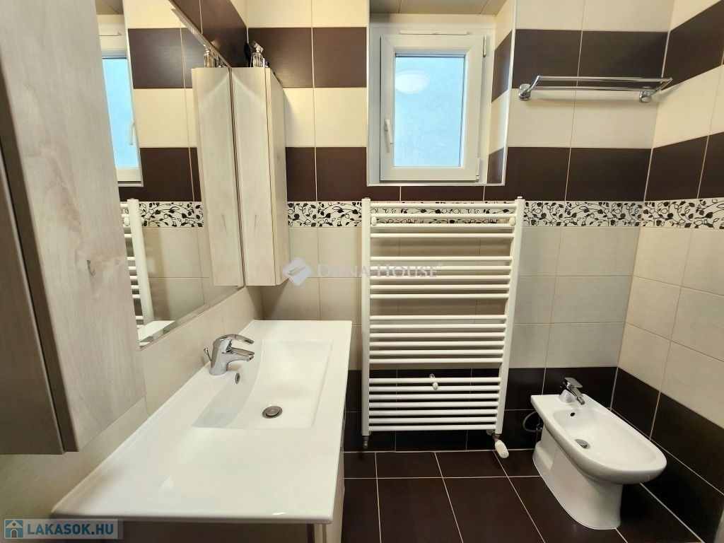 Előtér, 2 külön nyíló szoba, amerikai konyhás nappali, fürdőszoba, külön WC, valamint két fedett terasz, ahonnan gyönyörű panoráma nyílik a TV-toronyra.