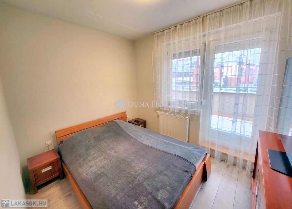 Eladó Pécs egyik legnépszerűbb részén, a Liget lakóparkban (Vadász utca) egy jó adottságokkal rendelkező, 2. emeleti, dupla teraszos lakás!Elhelyezkedés: A környék csendes, zöldövezeti, mégis jól megközelíthető.A közelben boltok, iskola, óvoda, tömegközlekedés is könnyen elérhető.A zárt lakópark területén, egy játszótér is található.Az ingatlan jellemzői:2008-ban épült, szigetelt tégla társasház 2. emeletén található.2022-ben teljes körűen felújították.Helyiségek: előtér, 2 szoba, amerikai konyhás nappali, fürdőszoba, wc, dupla terasz (fedett) melyről gyönyörű panoráma tárul elénk a Tv toronyra.Felszereltség:A minőségi gépek (bosch), tömörfa bútorok, a lakásban maradnak.Házközponti fűtés, a nappaliban egy hűtő-fűtő klíma is megtalálható.A lakás nyílászárói szigetelt műanyagok, redőnnyel és szúnyoghálóval ellátva.Az ingatlan rezsi költsége nagyon kedvező.1 db saját, felszíni parkolóhely.(3Mft)Igény szerint vásárolható hozzá egy garázs is!!