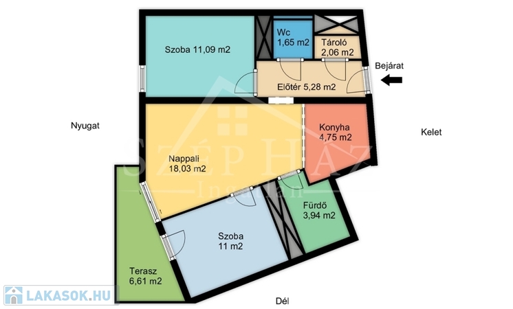 2 külön bejáratú szoba, amerikai konyhás nappali, külön fürdő és külön WC, valamint egy 6,6 m²-es terasz biztosítja a kényelmet és a jó helykihasználást.