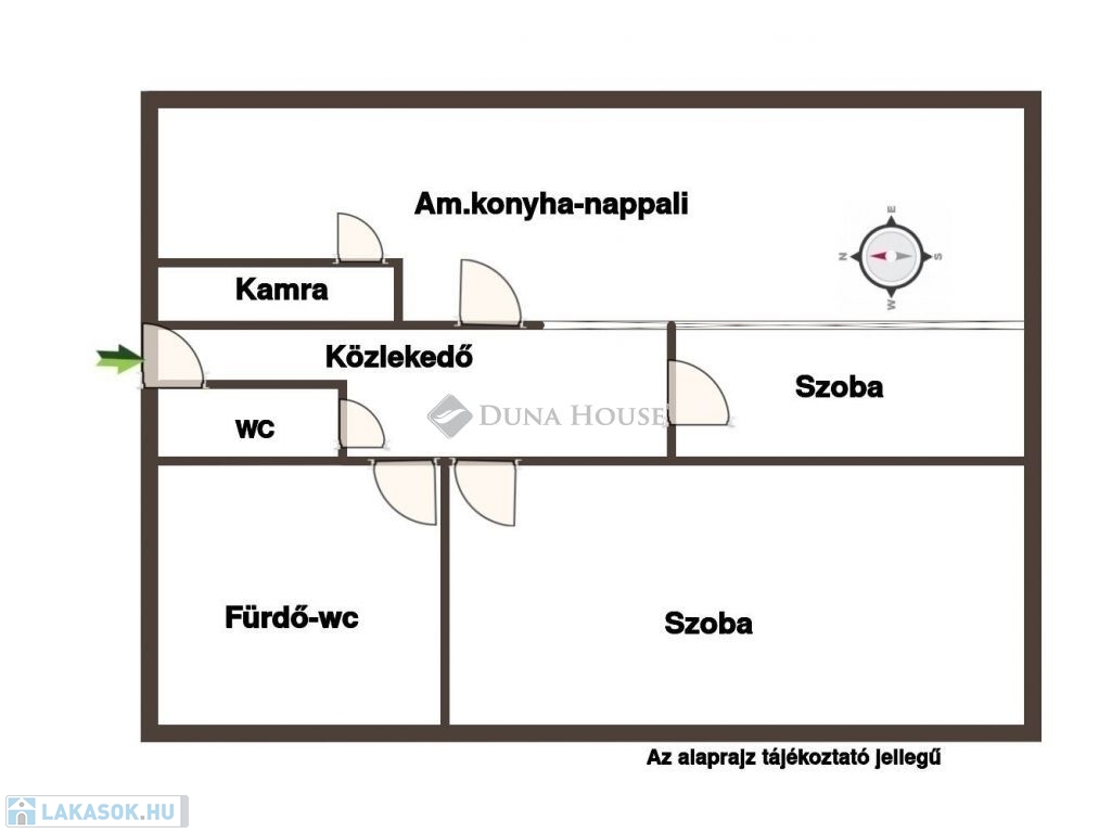 Az ingatlan központi része a világos, amerikai konyhás nappali, amely ideális helyszíne lehet családi együttléteknek, baráti beszélgetéseknek. A nappaliból nyíló két külön bejáratú szoba nyugodt, privát életteret biztosít – kiválóan alkalmasak hálószobának, gyerekszobának vagy akár dolgozószobának is.
