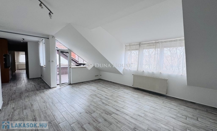 Eladó tetőtéri lakás Pécs közkedvelt Uránváros városrészében!Pécs egyik legkedveltebb, zöldövezeti részén, Uránvárosban eladóvá vált egy 1990-ben épült, kiváló állapotú, egyedi gázfűtéses tetőtéri lakás. Az ingatlan elrendezése és tágas tereinek köszönhetően ideális választás akár családok számára is.A lakás nettó alapterülete jól átgondolt elrendezésű:két különnyíló hálószoba,egy tágas, világos nappali,külön konyha és étkező,fürdőszoba és külön WC,kamra,dolgozósarok a gardrób részeként.A lakáshoz tartozik egy kb. 15 m²-es nagyméretű terasz, amely kiváló helyszínt biztosít pihenésre vagy baráti összejövetelekre.A lakás fenntartási költsége rendkívül kedvező, a fűtést és meleg vizet egyedi gázkazán biztosítja.A minőségi konyhabútor és beépített konyhai gépek a vételár részét képezik, ahogy a jelenlegi bútorzat is megegyezés tárgyát képezi.Az ingatlanhoz saját tároló is tartozik, a ház pedig rendezett, zöldövezeti környezetben található, jó szomszédsággal és kiváló infrastruktúrával: boltok, iskola, óvoda, buszmegálló néhány perces sétával elérhető.