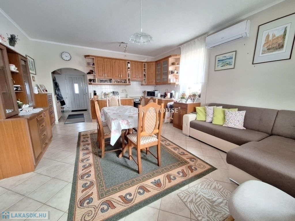 Az ingatlan műanyag nyílászárókkal, gáz-cirkó fűtéssel és riasztórendszerrel felszerelt. A nappaliból közvetlen kijárat nyílik a 12 m²-es fedett teraszra, ahonnan élvezhető a közös kert használata is.