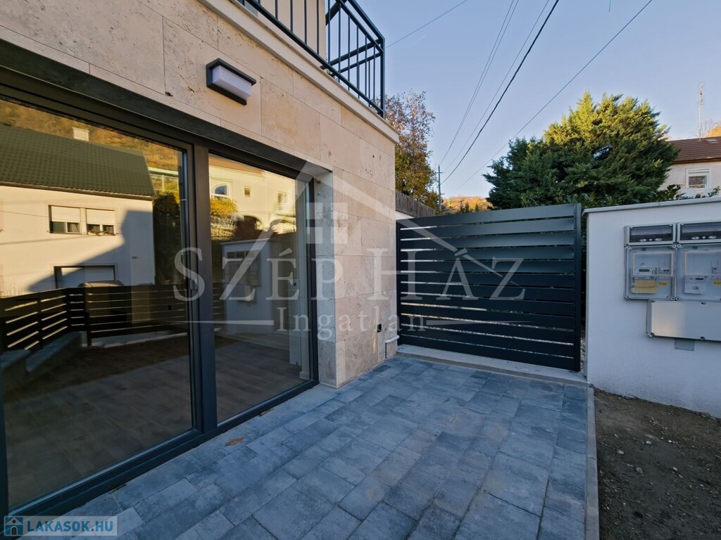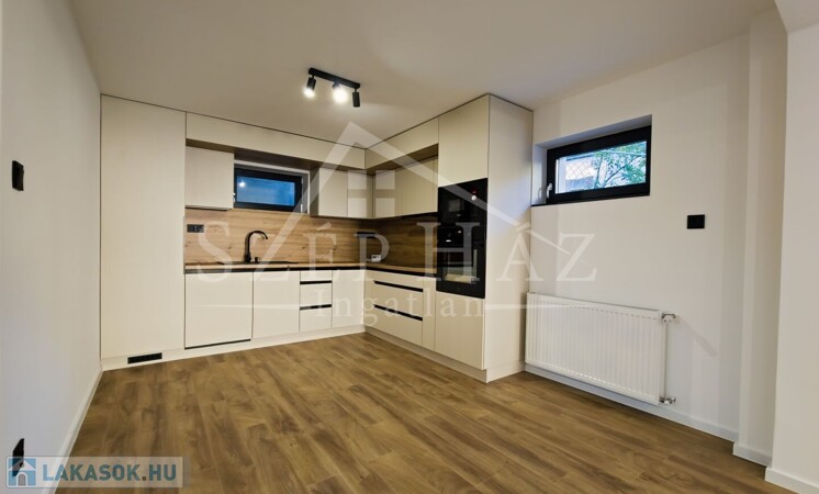 A modern, amerikai konyhás nappali és a két külön nyíló hálószoba kényelmes otthont biztosít, míg a saját kertkapcsolat valódi privát életteret teremt.