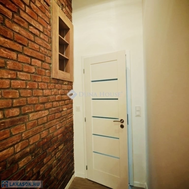 A lakás igazi különlegessége a gyönyörű, eredeti történelmi belvárosi fal, amely meghatározó látványelemként ad egyedi, hangulatos karaktert az otthonnak.