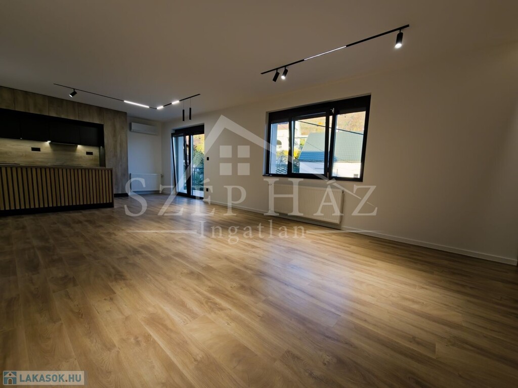 Az emeleti lakás tágas, világos terekkel, részleges panorámával és igényes anyaghasználattal kínál kényelmet.