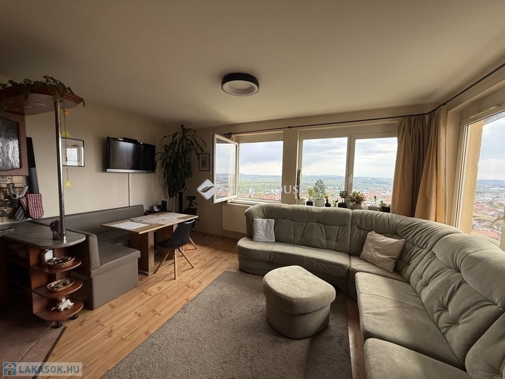 Pécs Havihegy Panorámás, garázskapcsolatos lakás 107 m²-es lakás ELADÓ!Pécs egyik legpatinásabb negyedében, a Havihegyen eladó egy műszakilag kifogástalan, gondozott állapotú, 107 m²-es lakás, lenyűgöző városi panorámával és ritka belső garázskapcsolattal.Elrendezés:3 hálószoba · nappali · fürdőszoba · különálló WC · fűtött garázs (belső bejárattal) · tetőtéri tároló (ablakos, természetes fényes)Műszaki állapot:Új cirkókazán · alig egyéves klímaberendezések · kifogástalan szerkezeti állapotMiért érdemes?A fűtött, előszobából közvetlenül nyíló garázs nemcsak kényelmes megoldás, hanem komoly értéknövelő tényező is. A tetőtéri tároló száraz, jól hasznosítható helyiség nem padlás. A kilátás zavartalan és örökpanorámás, a környezet csendes és presztízsértékű.Tudnivalók:A belső ajtók esztétikai cserére szorulnak, és egy friss festéssel az enteriőr azonnal megújítható.Kert és terasz nincs az ingatlan azoknak ideális, akik a panorámát és a belső komfortot helyezik előtérbe.