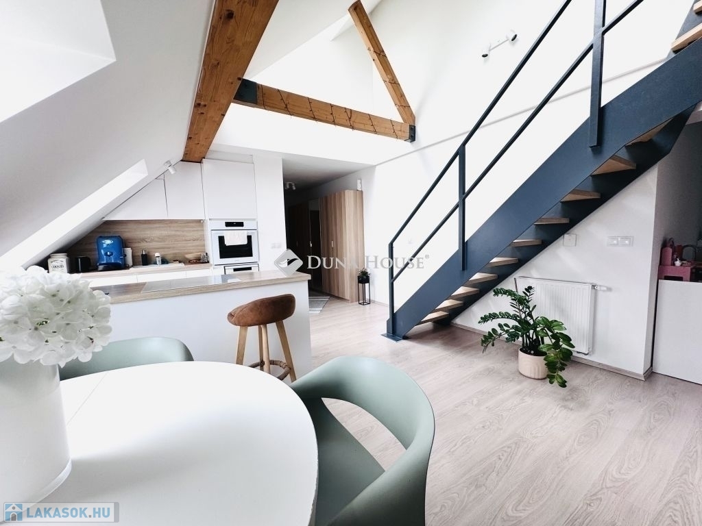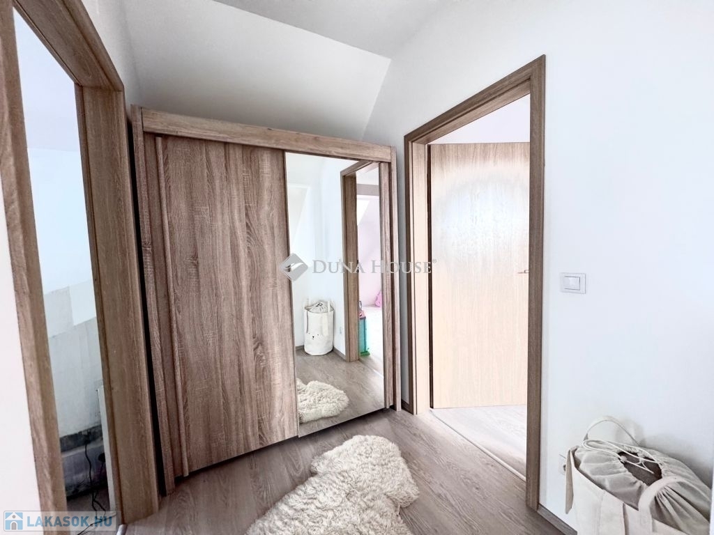 Eladó fiatalos, belső kétszintes lakás PatacsonAmerikai konyha nappali, 3 hálószoba, alacsony rezsi, zárt udvar!Patacson, egy 2019-ben épült, modern társasházban eladóvá vált egy kiváló elrendezésű, belső kétszintes, 3 hálószobás lakás. Az ingatlan amerikai konyhás nappalival rendelkezik, stílusosan, fiatalosan berendezett, így ideális választás lehet fiatal pároknak, családoknak vagy akár befektetésnek is.A lakás egyik legnagyobb előnye a rendkívül alacsony rezsi, amely a társasház korszerű építési megoldásainak köszönhetően hosszú távon is gazdaságos fenntartást biztosít.A társasházhoz tartozik egy zárt belső udvar, amelyet a lakók közösen használhatnak.Az ingatlanhoz jutányos áron garázs bérelhető, amelynek bérleti joga továbbvihető az új tulajdonos számára is.A parkolás a ház előtt ingyenes .Költözzön egy modern, kényelmes és fiatalos otthonba Patacs egyik legjobb részén!