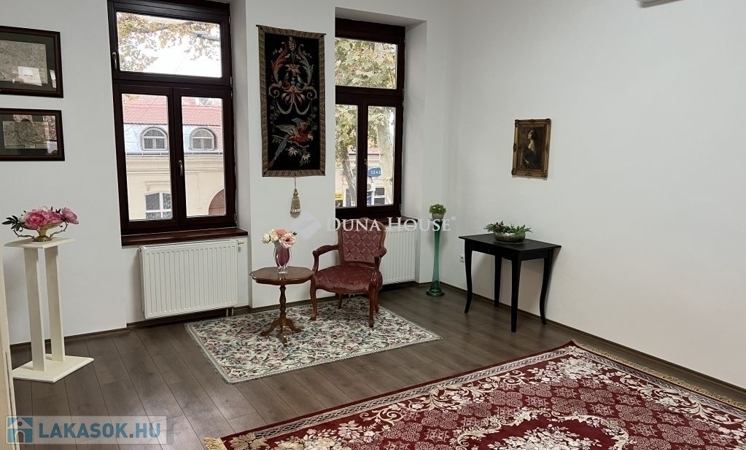 Eladó tágas, polgári lakás Pécs belvárosában, a Szabadság utcában – 104 m², erkéllyel, akár irodának, rendelőnek vagy szalonnak is ideális!Pécs frekventált részén, a Szabadság utcában kínálunk megvételre egy 104 m²-es, polgári stílusú, kiváló elrendezésű ingatlant. Az első emeleten található lakás tágas tereinek, nagy belmagasságának és jól tagolt alaprajzának köszönhetően nemcsak otthonnak, hanem irodának, ügyvédi irodának, rendelőnek, kozmetikai vagy egészségügyi szalonnak is tökéletes választás lehet.Az ingatlan elosztása: 3 nagy szoba, külön konyha-étkező, fürdőszoba, külön WC, valamint egy 6 m²-es erkély, amely az udvar felé néz. A lakás világos, reprezentatív megjelenésű, könnyen alakítható az új tulajdonos igényei szerint.Fűtése Viessmann gázkazánnal megoldott, az épület rendezett, a környék pedig könnyen megközelíthető, akár tömegközlekedéssel, akár autóval.További előny: az ingatlanhoz opcionálisan teremgarázs-hely is megvásárolható, ami ritkaság a belvárosban.Ha Ön egy jól megközelíthető, elegáns helyszínt keres vállalkozása számára, vagy értékálló belvárosi otthont, ez az ingatlan remek lehetőség!