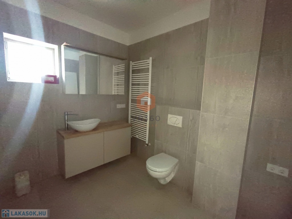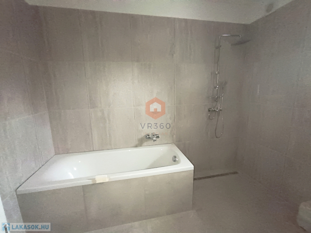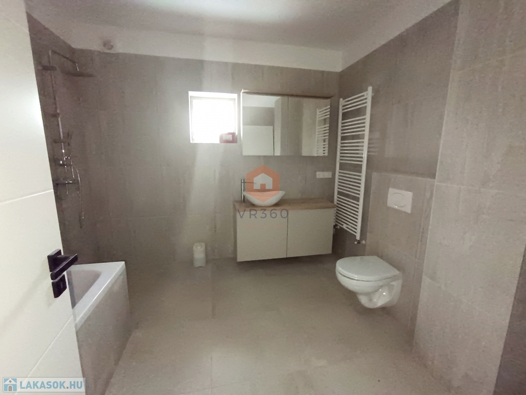 2 fürdőszoba, egy zuhanyzós, a legnagyobb szobából nyílik. A nagyobb fürdőszobában kád, zuhanyzó és WC is helyett kapott.