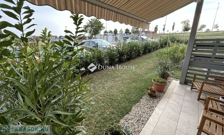 Eladó újszerű kertvárosi lakás, saját parkosított kertkapcsolattal!!!!!Pécs egyik csendes, zöldövezeti részén kínálunk megvételre egy 2023-ban átadott 92 m²-es földszinti lakást, amely minden igényt kielégítő belső kialakítással és kivételes külső adottságokkal rendelkezik.Kertkapcsolat és extra területekA lakáshoz tartozik egy 240 m²-es kizárólagos használatú, parkosított kert, benne egy könnyűszerkezetes, 10 m²-es kisházzal ideális tárolónak vagy hobbihelyiségnek.Két kényelmes terasz, mindkettő beépített, kinyitható árnyékolóval.A kertből kiskapun keresztül is eljuthatunk a két autóbeállóhoz, melyek közvetlenül a lakás előtt helyezkednek el.Belső elrendezés 3 hálószoba Tágas nappali-konyha-étkező egy légtérben 2 igényes fürdőszobaPrémium felszereltség FAP olasz hidegburkolatok Hansgrohe falba süllyesztett csaptelepek Blanco gránit mosogató és csaptelep a konyhában Minőségi német konyhabútor kompakt munkapulttal, konyhaszigettel Új, elektromos fehér alumínium redőnyök minden ablakon Hőszivattyús padlófűtés + fancoil hűtés a kellemes klímáért egész évben Alacsony rezsiköltségek, energiahatékony, és letisztult, igényes belső terek.Elhelyezkedés szempontjából is ideális:A belváros autóval mindössze 7 perc, de a tömegközlekedés is kiváló. A mindennapi ügyintézéshez szükséges szolgáltatások csupán egy percre találhatók: Tesco, Rossmann, gyógyszertár, minden gyalogosan is gyorsan elérhető.