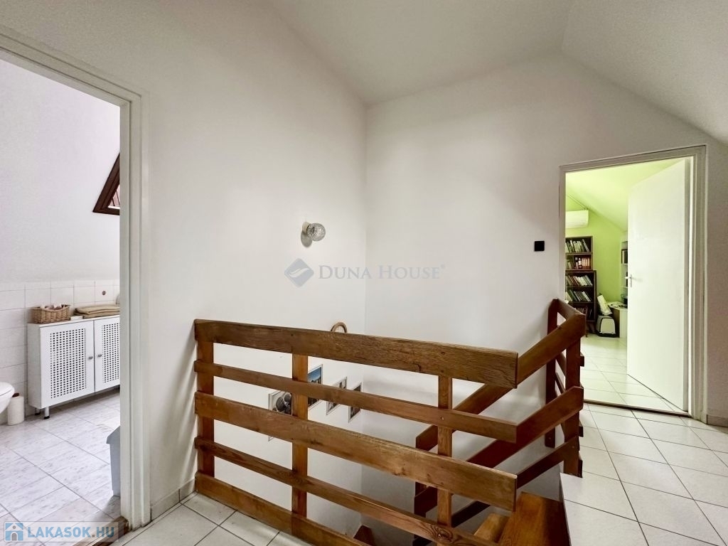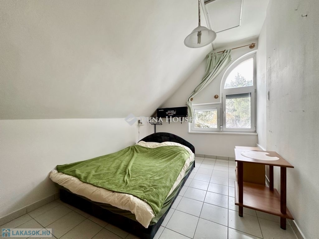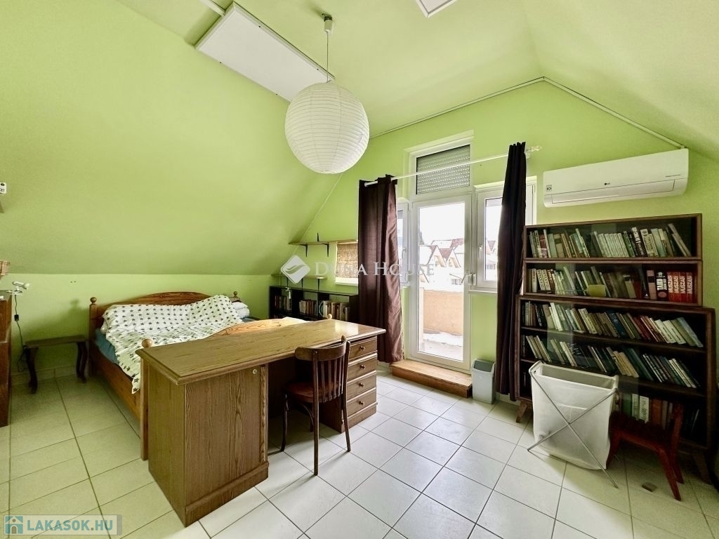 A felső szint három kényelmes hálószobát és egy kádas fürdőszobát kínál, melyek közül az egyik hálószobához saját terasz is tartozik.A lakás korszerű műszaki felszereltséggel rendelkezik: a kellemes hőérzetről padlófűtés gondoskodik infrapaneles rásegítéssel a klímaberendezés és a beépített szauna pedig tovább növelik a komfortot.