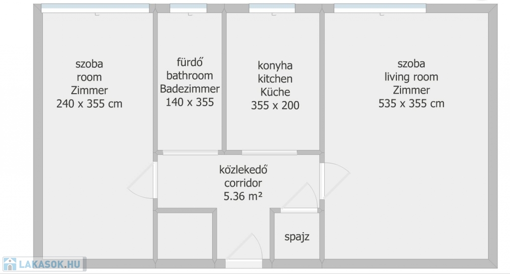 A helyiségek elrendezése a mellékelt alaprajz alapján.