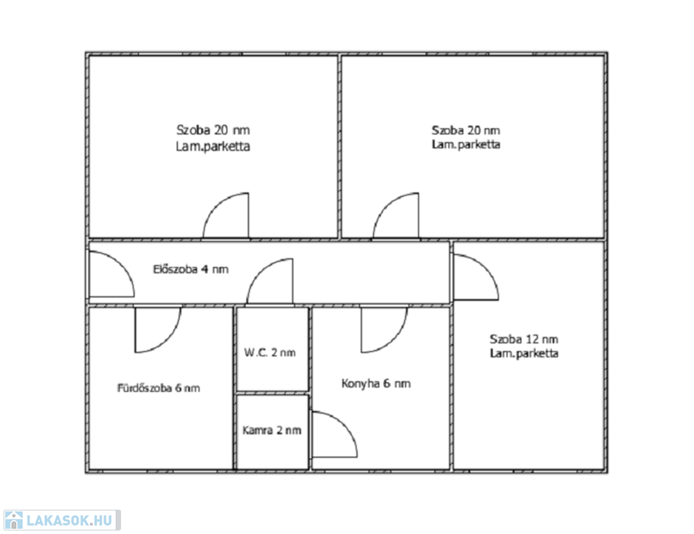 Az ingatlanban 2 szoba, 1 félszoba, konyha, kamra, előszoba, fürdőszoba, külön nyíló W.C. található.