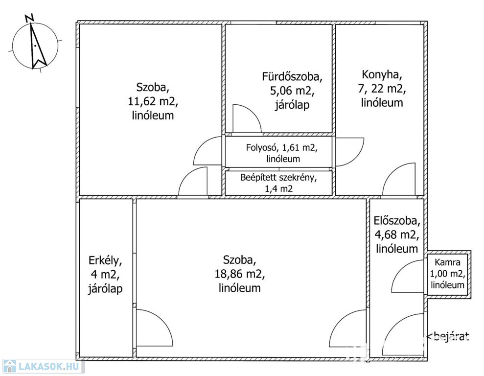 Az ingatlan napfényes, kétszobás, erkélyes, nyugati fekvésű.