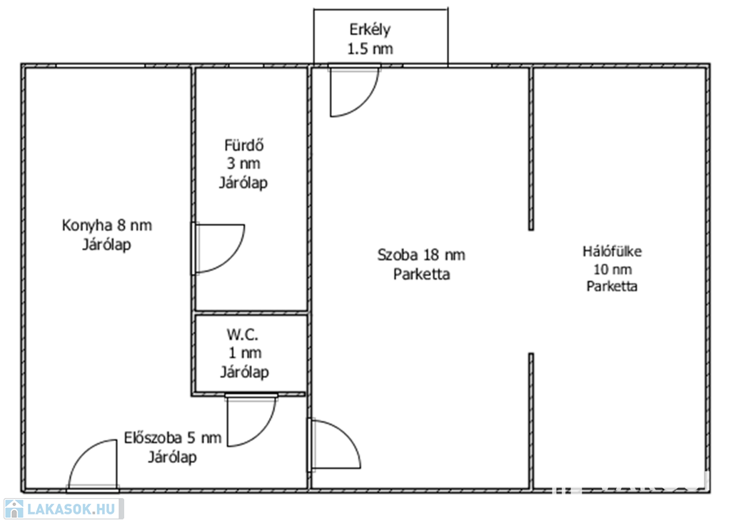 Az ingatlanban 1 szoba, 1 hálófülke (félszoba), konyha, előszoba, fürdőszoba, külön nyíló W.C., erkély található.