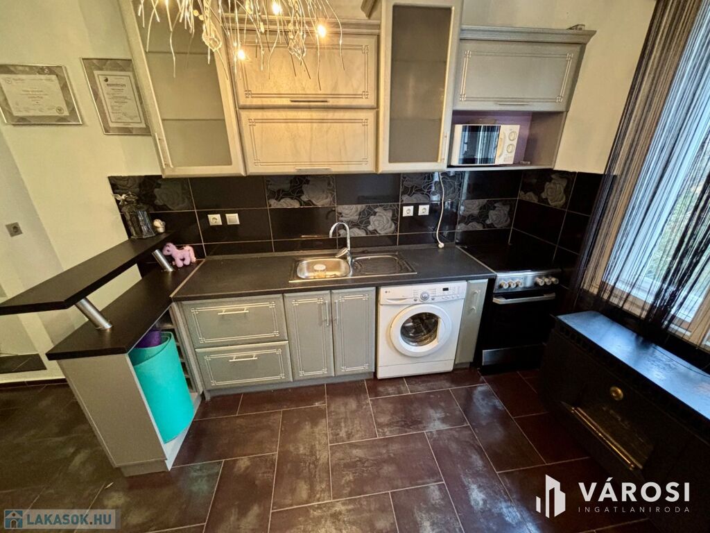A konyhában modern, minőségi konyhabútor került beépítésre. A fürdőszoba és a külön nyíló W.C. felújított.