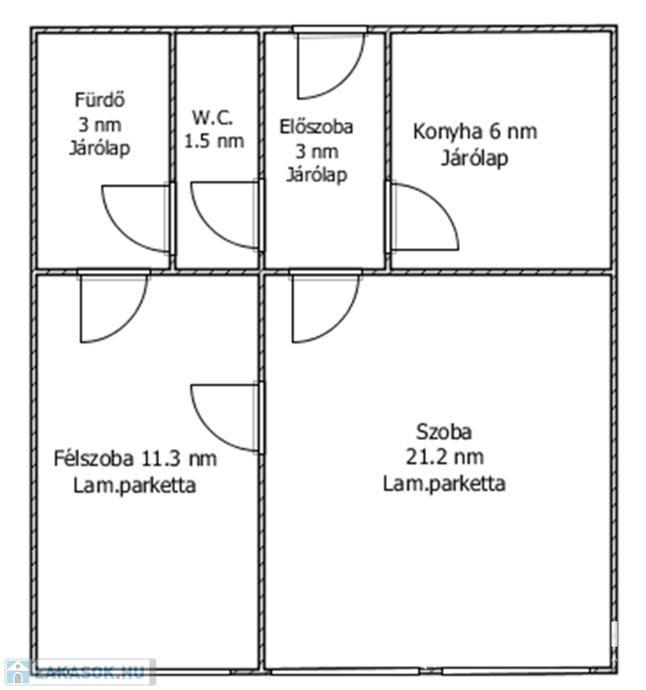 Az ingatlanban nappali, 1 hálószoba, konyha, előszoba, fürdőszoba, külön nyíló W.C. található.