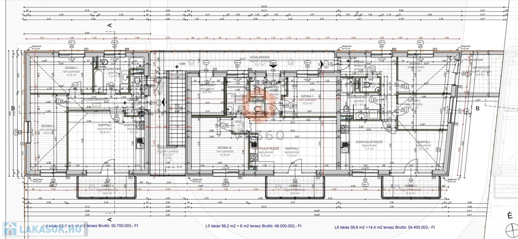 Nettó ( hasznos alapterület) : 57,4 m2, bruttó alapterület: 66,5 m2.
