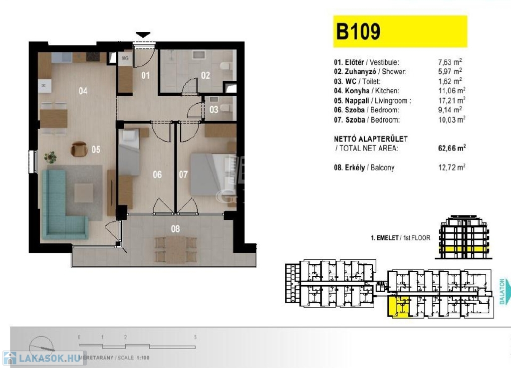 Az ötemeletes apartmanház a Balatonra merőlegesen helyezkedik el, így biztosítva a lakásokból az örök balatoni panorámát tulajdonosainak. Modern, új építésű, prémium minőségű apartmanok várják Önt, közvetlenül a vízparton. Az ingatlan előtt húzódó több mint 3 km hosszú szabad strand gondozott zöldterületekkel, parti sétányokkal és sportolási lehetőségeket kínáló kölcsönzőhelyekkel szolgálja ki az itt nyaralók igényeit.