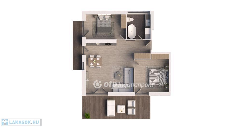Főbb jellemzők: Alapterület: 72,61 nm Helyiségek: nappali + 2 hálószoba + konyha, étkező + fürdőszoba. 2 tágas terasszal (6,04 nm, 20,48 nm), saját kertrész(85,49 nm), amely tökéletes pihenésre vagy kertészkedésre Kültéri parkolóhely az ingatlanhoz. Modern kialakítás, prémium anyaghasználat. Kiváló elhelyezkedés, közel a Balatonhoz és a városközponthoz.