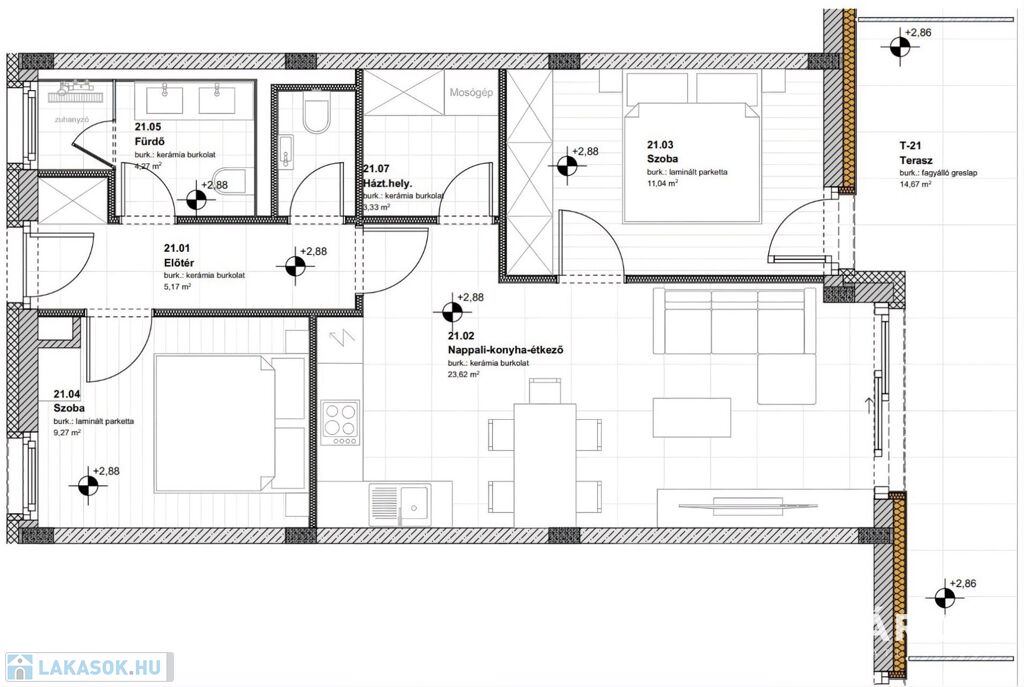 • Terület: 61 m² lakótér + 15 m² panorámás terasz!