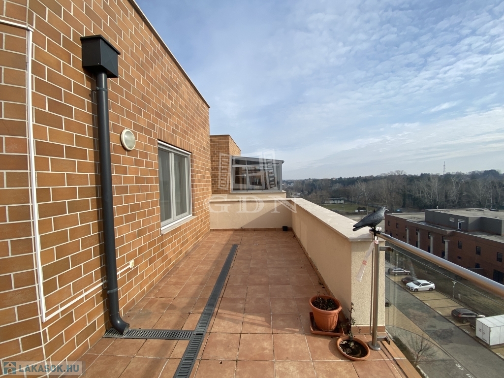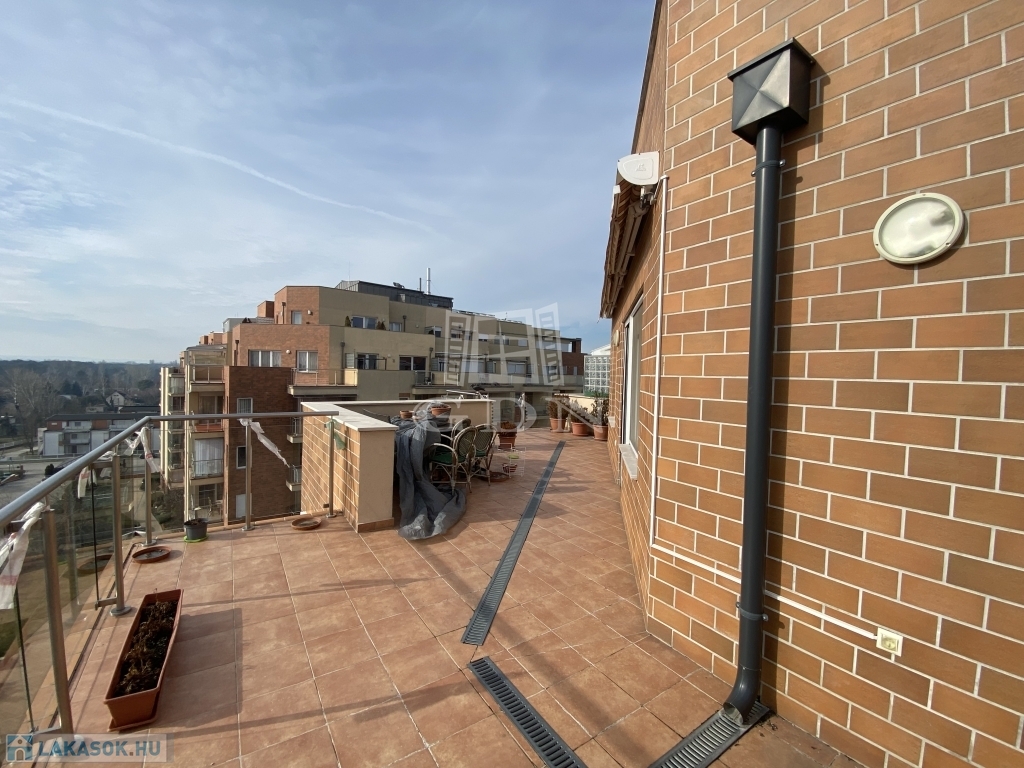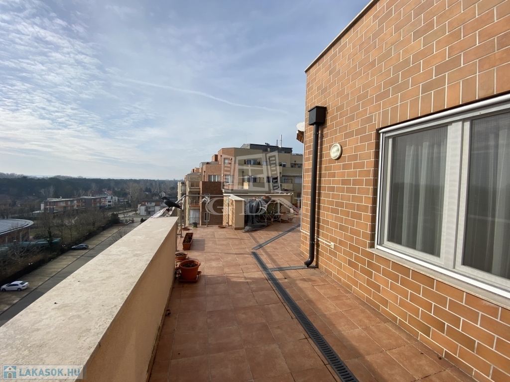 Siófok, Aranypart legszebb lakóparkjában, liftes házban 7.emeleti penthouse lakás eladó 50 négyzetméteres panorámás terasszal!