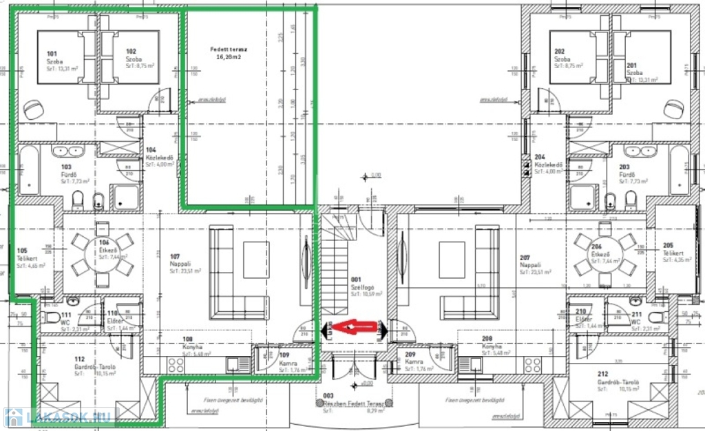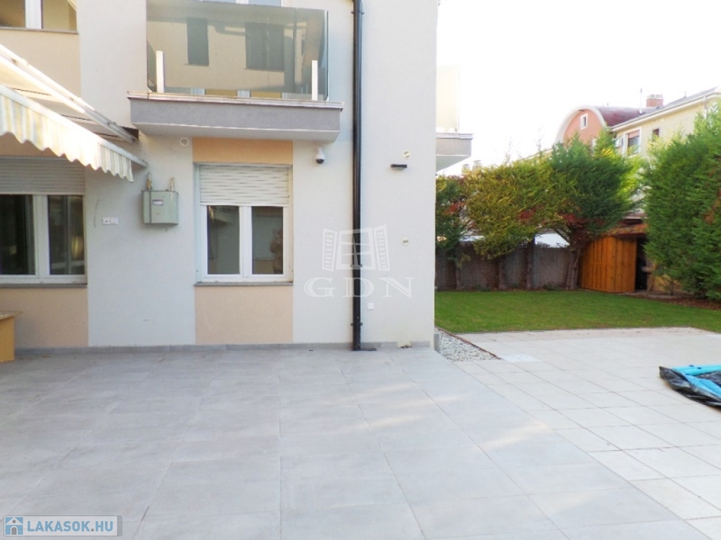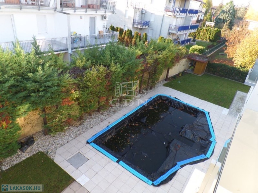 A 6 lakásos társasház rendezett, közös használatú udvarán található medence, és napozó terasz. A lakásokhoz 2 saját autóbeálló tartozik, melyek megvásárlása kötelező, ára 2x4.000.000,- Ft.