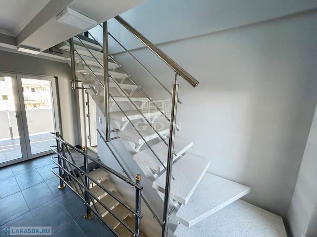 Az ingatlan magas színvonalú kivitelezéssel került újjáépítésre, a mai kor energetikai igényei alapján. A 3 szintes társas ház 944 m2 telken található, téglából épült, homlokzati szigeteléssel rendelkezik. A fűtést gázkazán, radiátor hőleadóval és hűtő-fűtő klíma biztosítja valamint a fa tüzelésű kandalló, amely egyedi hangulatú és praktikus. Műszaki paraméterei: szigetelt lemeztető, műanyag nyílászárók, fa beltéri ajtók, minőségi meleg és hidegburkolatok. A lakásban lévő berendezés a vételár részét képezi.