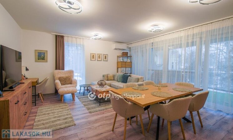 A komfortérzetről a korszerű hőszivattyús rendszer, padlófűtés, valamint klímaberendezés gondoskodik, így a lakás nyáron hűvös, télen gazdaságosan fűthető.