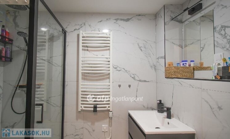 A komfortérzetről a korszerű hőszivattyús rendszer, padlófűtés, valamint klímaberendezés gondoskodik, így a lakás nyáron hűvös, télen gazdaságosan fűthető.